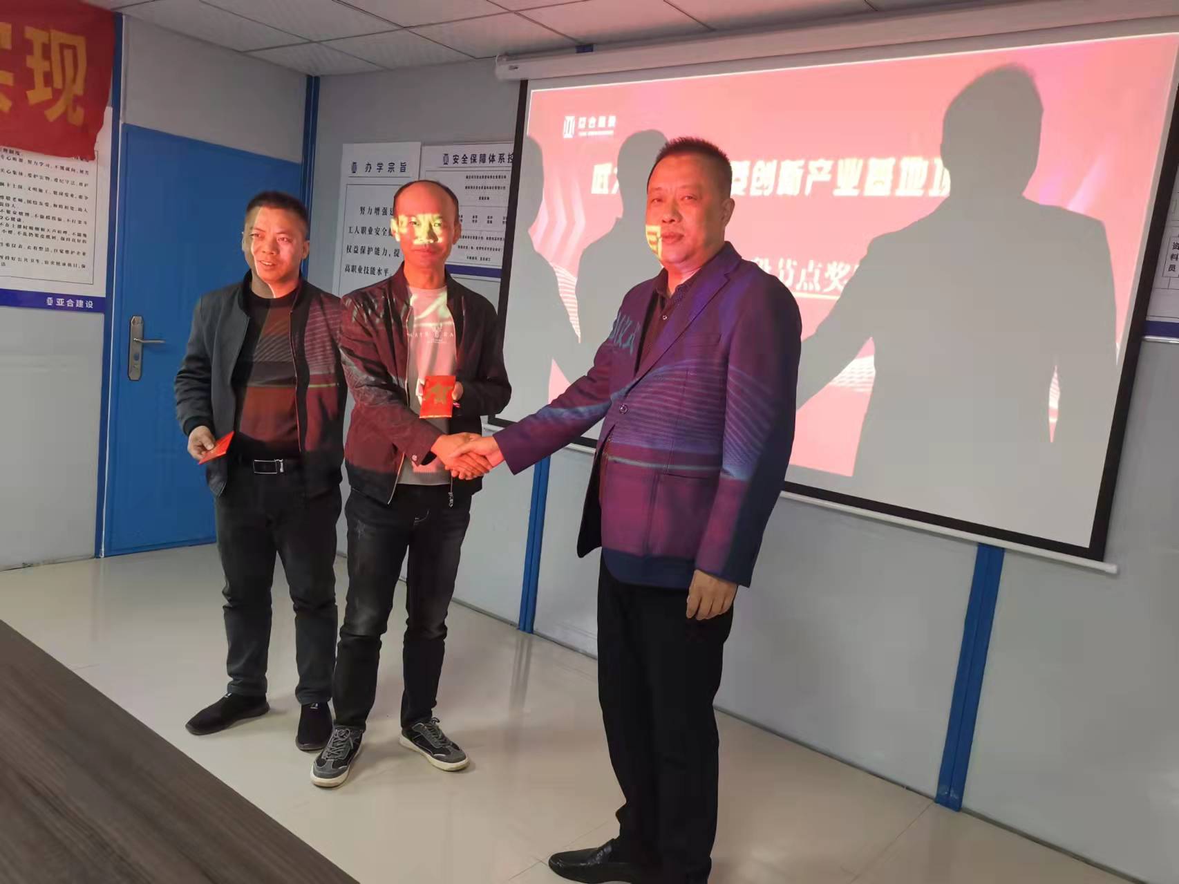2021年11月12日下午,亞合建設(shè)在武大科技園青菱創(chuàng)新產(chǎn)業(yè)基地項(xiàng)目部組織召開“百日大戰(zhàn)”一階段節(jié)點(diǎn)獎勵儀式,亞合建設(shè)總經(jīng)理羅奇志、工程副總楊明富、安環(huán)經(jīng)理韓衛(wèi)、行政經(jīng)理石洋、青菱項(xiàng)目部項(xiàng)目經(jīng)理、項(xiàng)目管理人員、勞務(wù)班組、施工員等三十余人參加了此次活動。